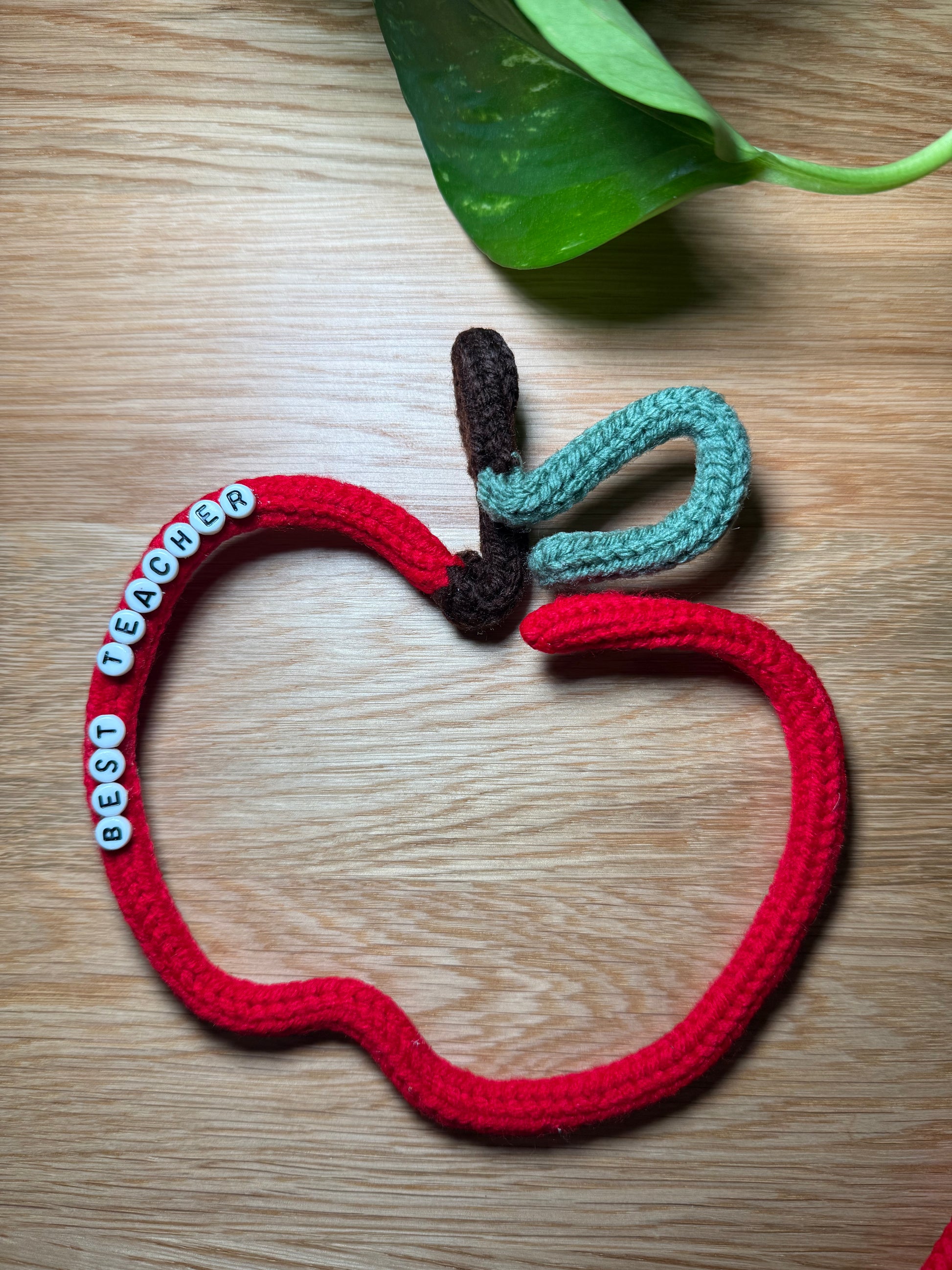 Show your appreciation with this charming knitted wire art featuring a classic apple shape and the words “Best Teacher.” Thoughtfully handcrafted, it's a unique and heartfelt gift perfect for teacher appreciation, end-of-year thank-yous, or classroom decor.