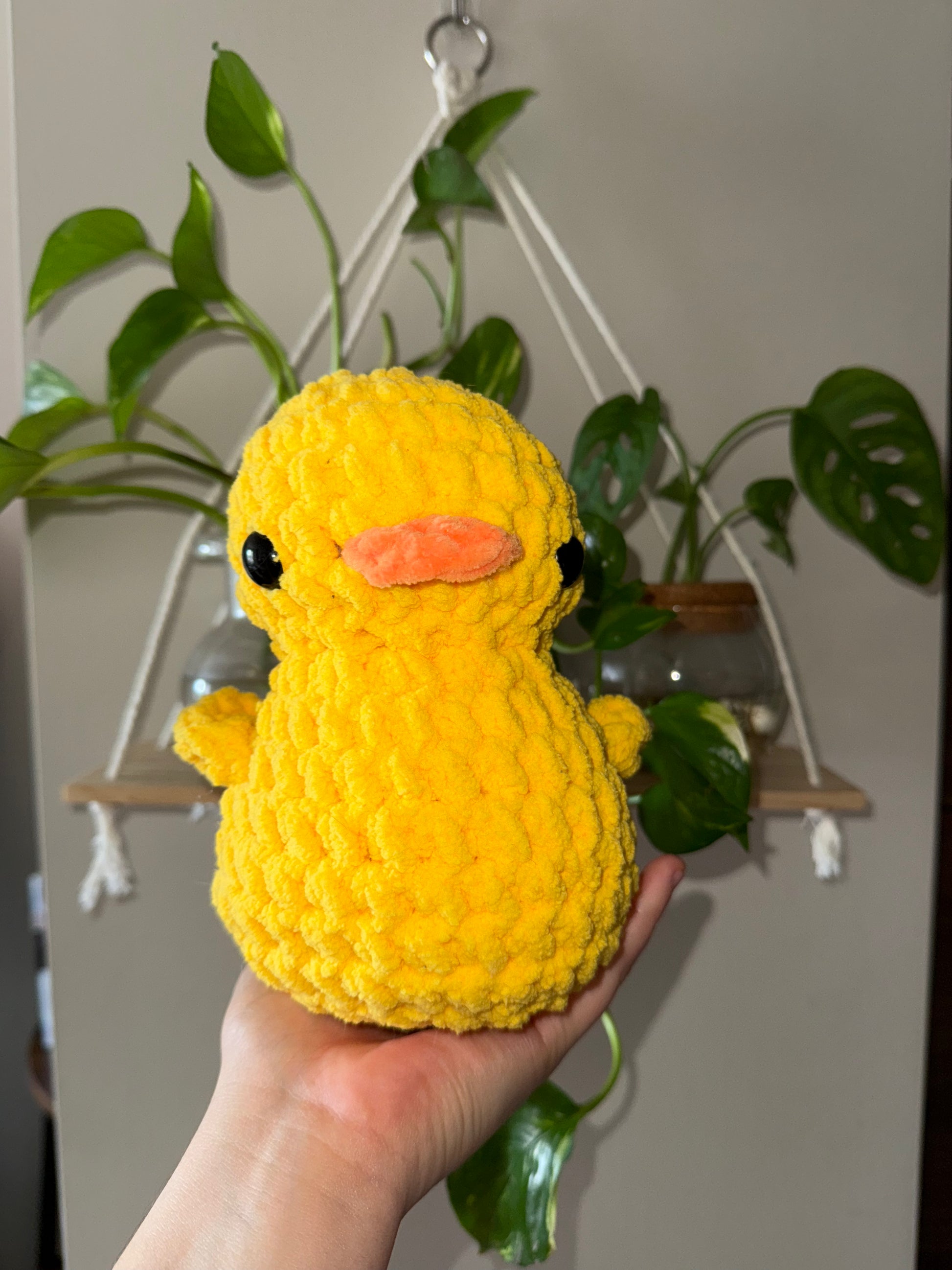 Meet your new cuddly companion! This handmade crochet Duckie plushie is as adorable as it is huggable—perfect for gifting or brightening up your space with a splash of sweetness. Available in a variety of cheerful colors to suit every personality.