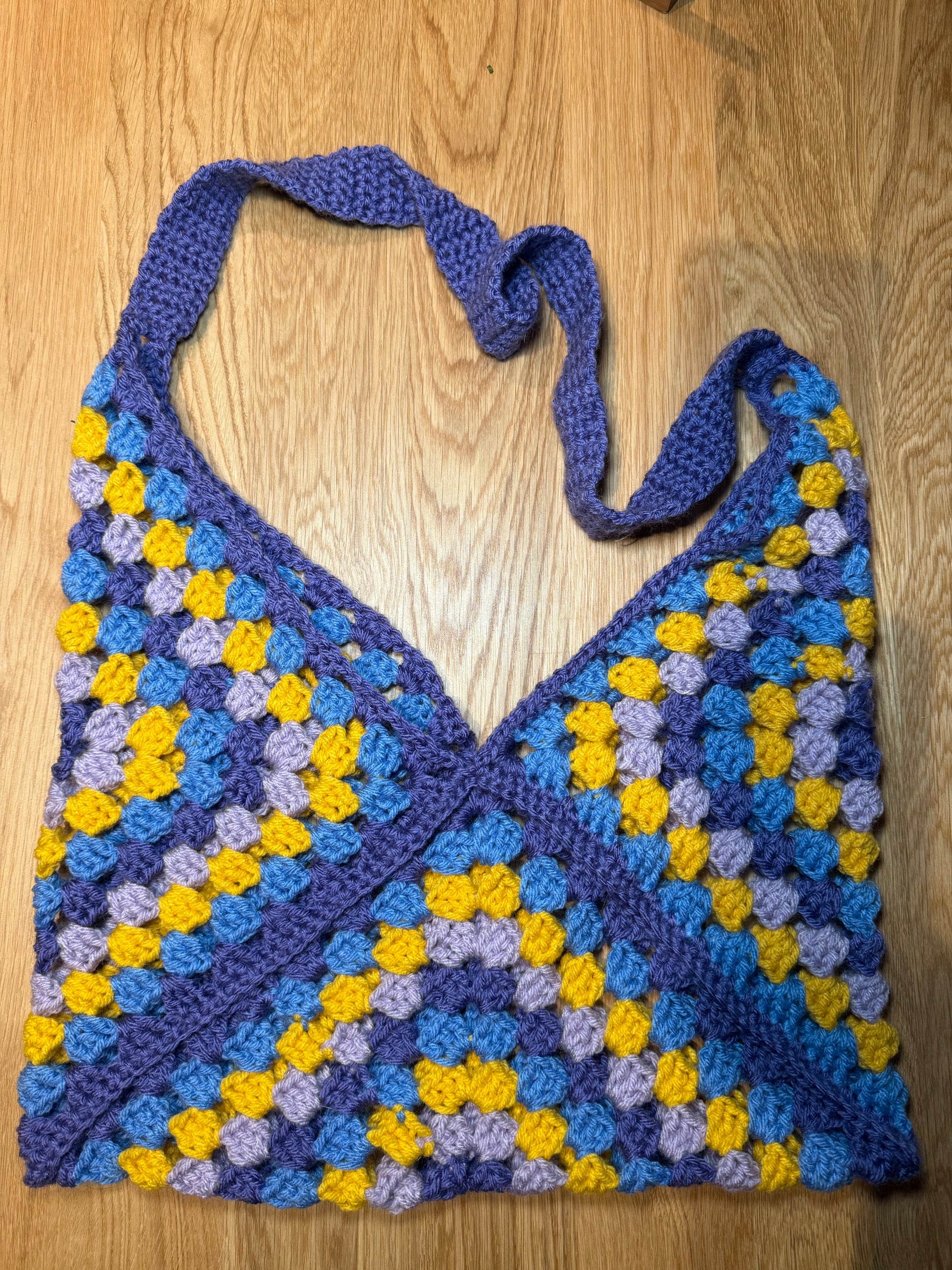 Carefully crocheted using sturdy yarn and classic granny square techniques, this bag has a nostalgic, retro feel with a modern twist. Whether you're heading to the farmer’s market, a picnic, or just out and about, this purse is your go-to for effortless style with a handmade touch.