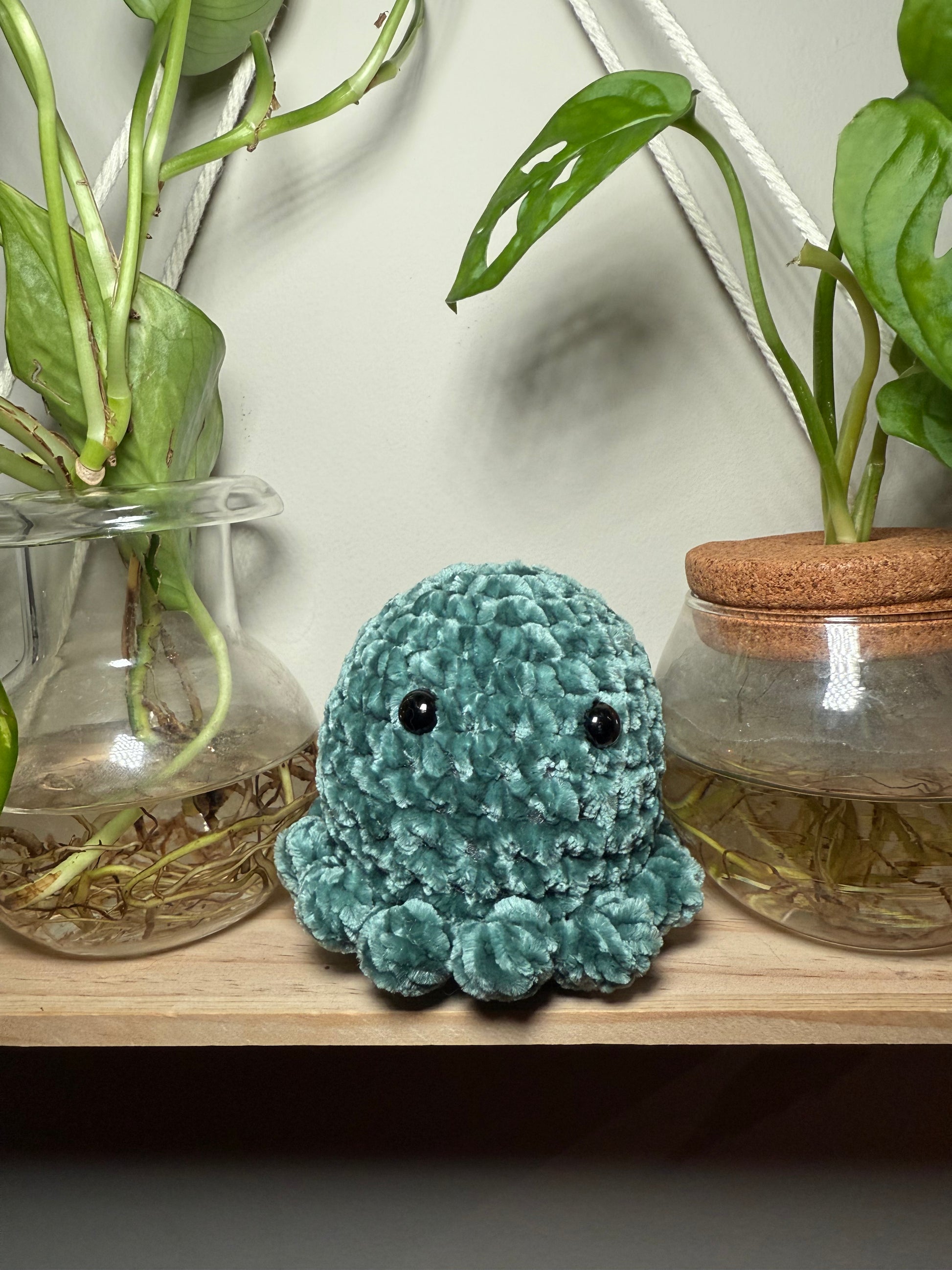 Each octopus is handmade with soft, durable yarn and features a friendly face with safety eyes (or embroidered eyes upon request). Whether you’re looking for something sweet for a baby shower, a fun desk buddy, or just a little joy in plush form – these colorful octos are ready to brighten your day.
