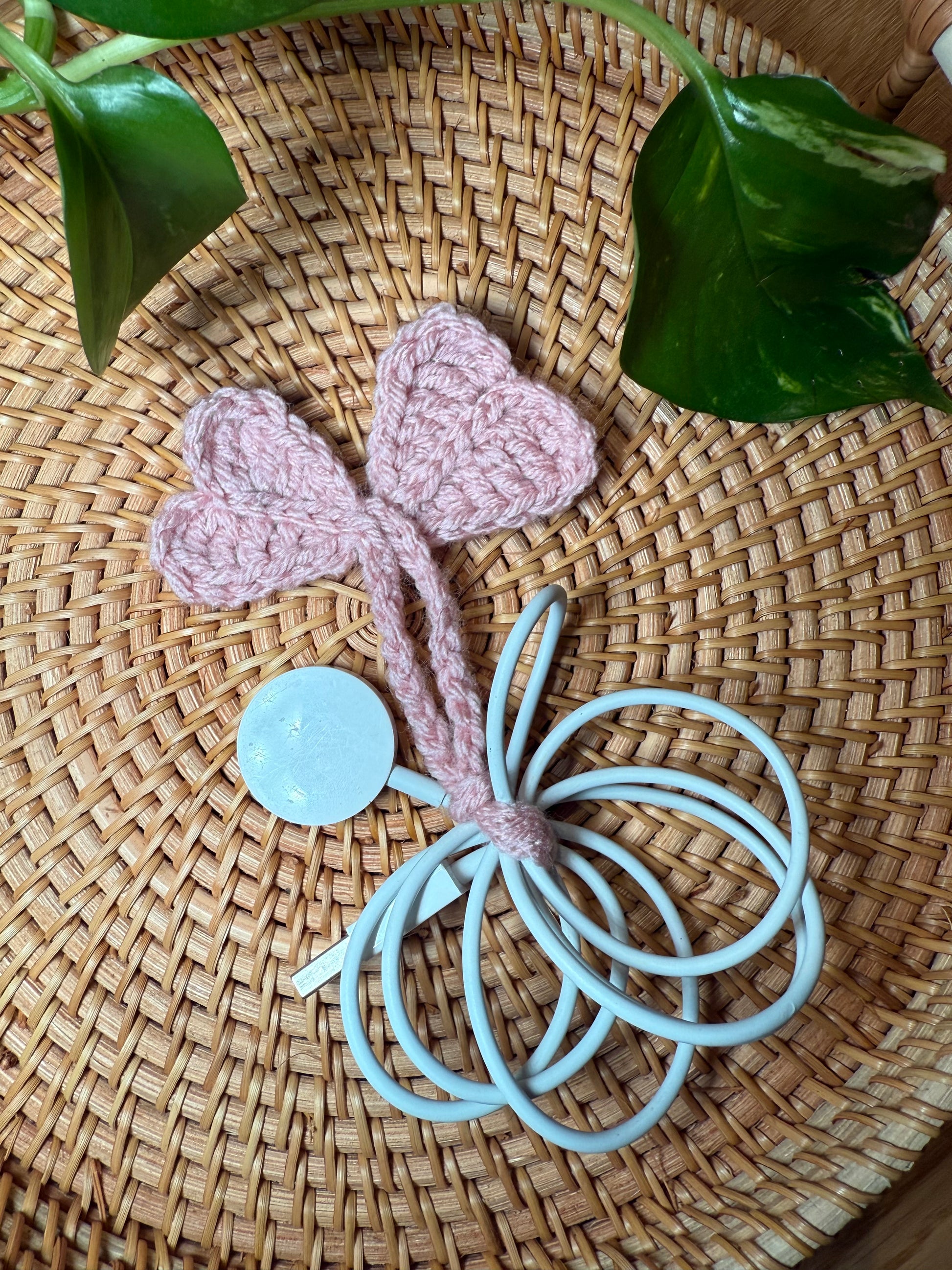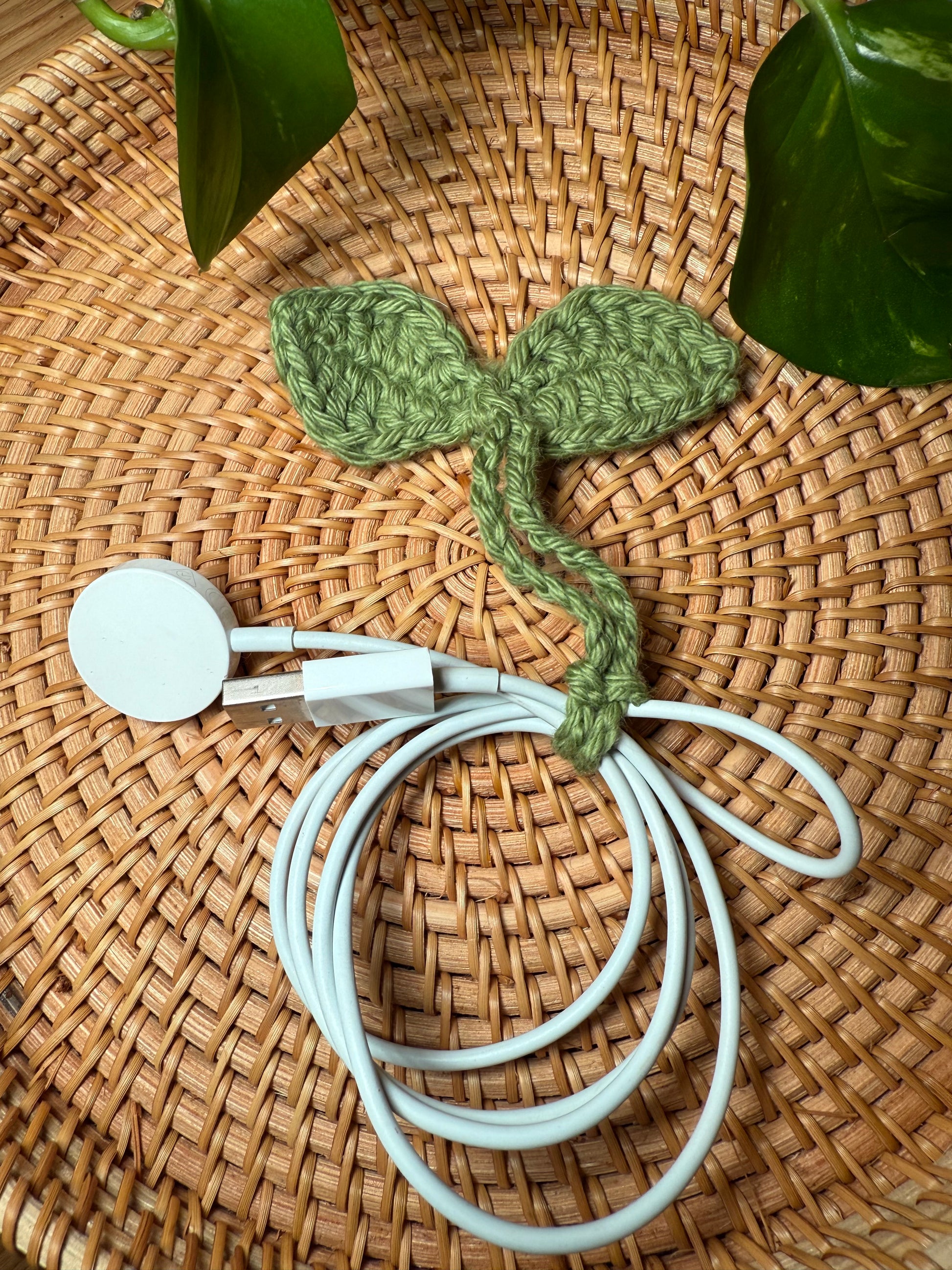 Keep your cables cute and tangle-free with this handmade crochet sprout! Perfect for tying up chargers in your bag or wrapping on over the head headphone, it doubles as an adorable accessory—making it look like a little leaf or heart is sprouting right from your head. Functional, fun, and full of charm! 🌱💚