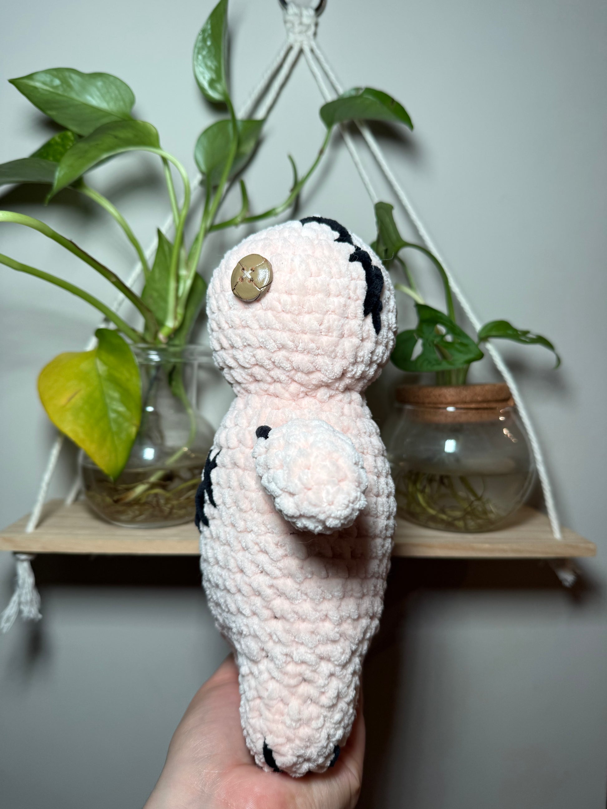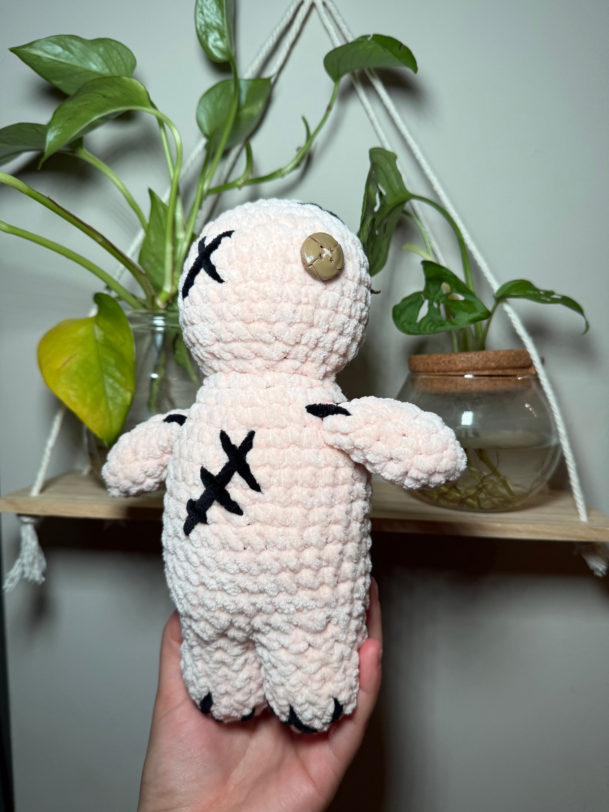 A little creepy, a little quirky — this handmade crochet voodoo doll features a stitched-up body, one unsettling button eye, and all the spooky charm you didn’t know you needed. Simple in design, full of weird vibes. Honestly… we’re just trying to find it a home.