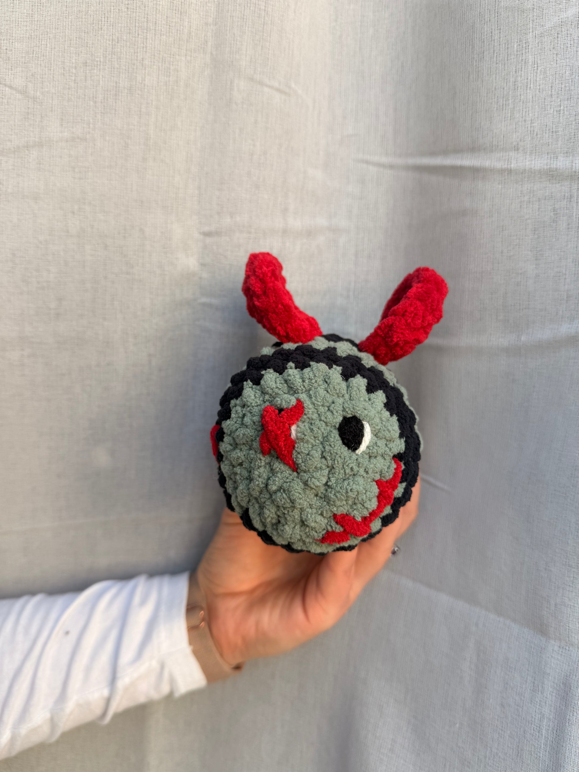 Handmade with soft, baby-safe yarn and fully embroidered details, this undead buzz buddy is perfect for spooky season snuggles, Halloween gifts, or anyone who loves a twist on the cute and creepy.